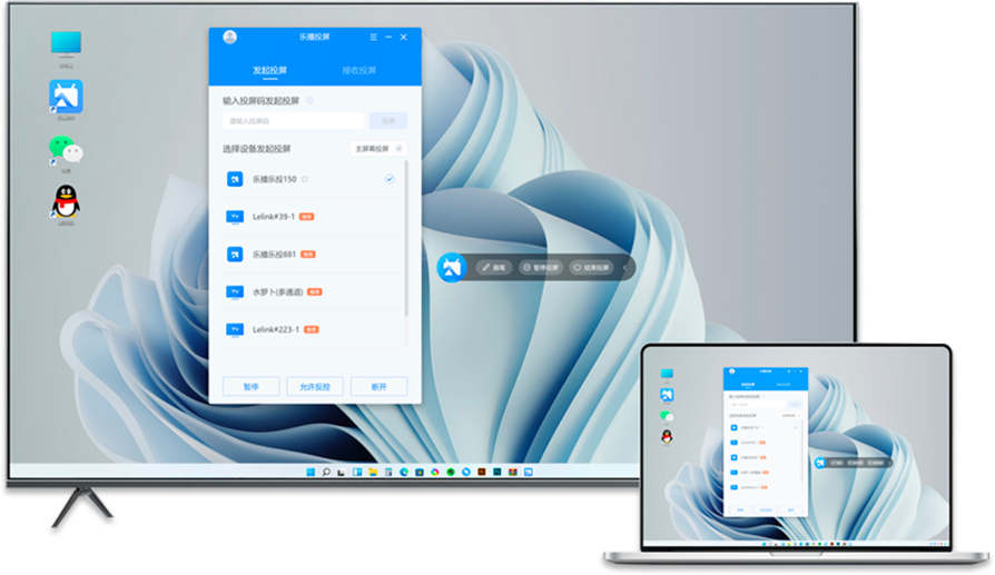 • 投屏时支持画板功能,可对投屏内容进行涂画,方便讲解投屏内容